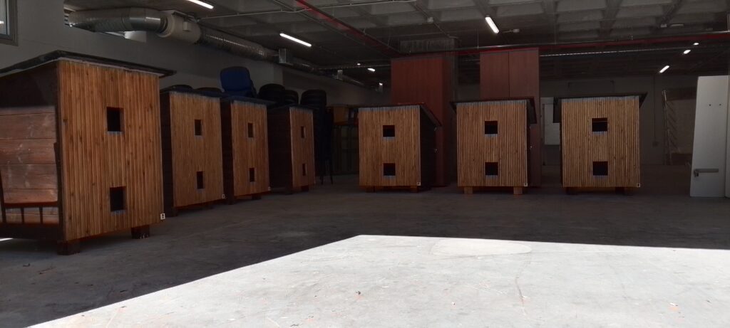 El diseño del refugio emula una cabaña sencilla. Inspirándose armoniosamente en entornos naturales o urbanos cuentan con una cámara acústico-térmica que aísla del ruido exterior y mantiene una temperatura interna confortable, protegiendo a los gatos de condiciones climáticas adversas y reduciendo el estrés causado por los ruidos ambientales. Además el refugio está equipado con un acceso práctico que facilita las tareas de limpieza y el monitoreo de la colonia permitiendo a los cuidadores realizar su labor de manera eficiente y segura.