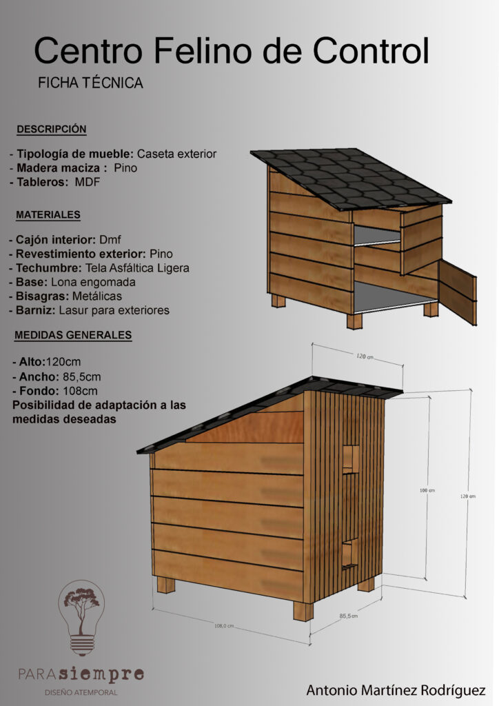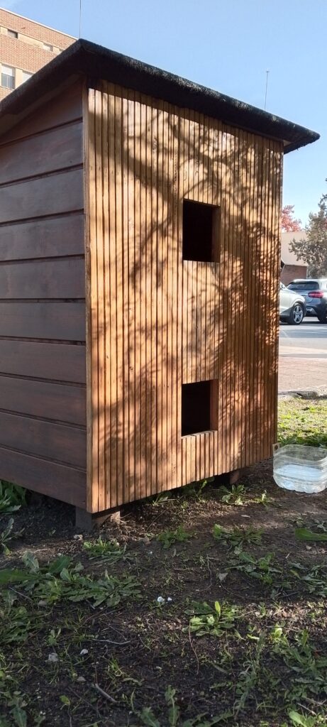 Inspirado en la simplicidad y funcionalidad de una cabaña rústica, nuestro refugio para gatos callejeros ofrece un espacio acogedor y seguro para los felinos que viven al aire libre. Construido con madera natural el refugio garantiza una durabilidad y resistencia frente a la inclemencia del tiempo y posibles plagas, para reforzar su protección la estructura ha sido acabada con dos capas de lasur específicas para exteriores, asegurando una defensa adicional contra la humedad y los rayos UV.