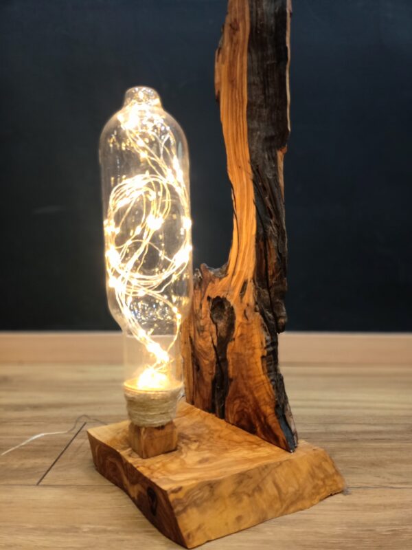Esta lámpara única, hecha de madera de olivo, es una expresión sostenible y ecoamigable del arte del upcycling. Cada pieza cuenta una historia, reutilizando material de manera creativa para iluminar tu espacio con un toque de elegancia y consciencia ambiental.