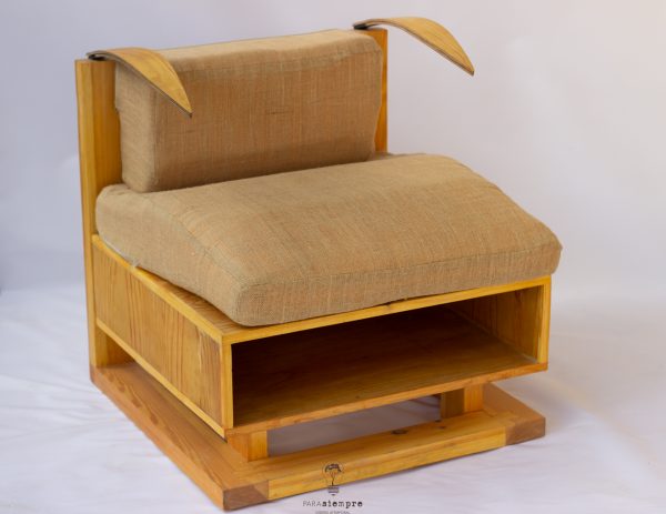 Mueble de asiento. Madera de pino y sapeli.