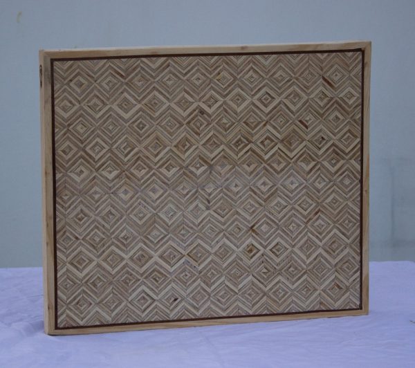 Nuestra tabla de presentación es una obra original de taracea. La taracea es una antigua técnica artesanal que combina diferentes tipos de madera y materiales para crear intrincados patrones decorativos en superficies de muebles o objetos. Esta pieza única es un testimonio de habilidad artesanal y elegancia.